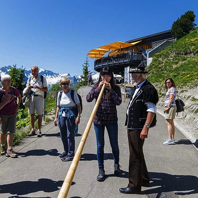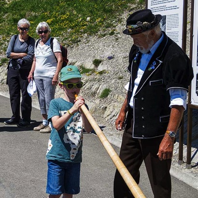 2018-06-20_Schynige-Platte alle Besucher - auch die kleinsten - dürfen versuchen das Alphorn zu spielen.