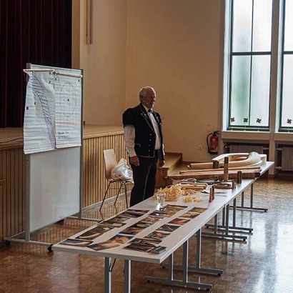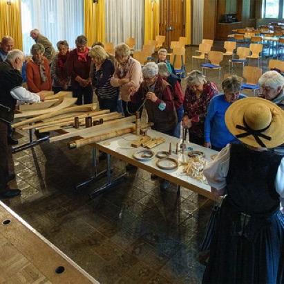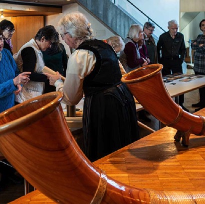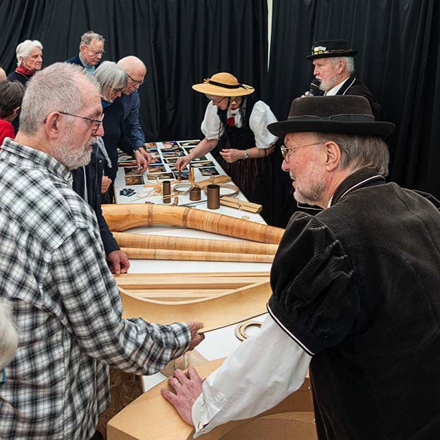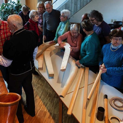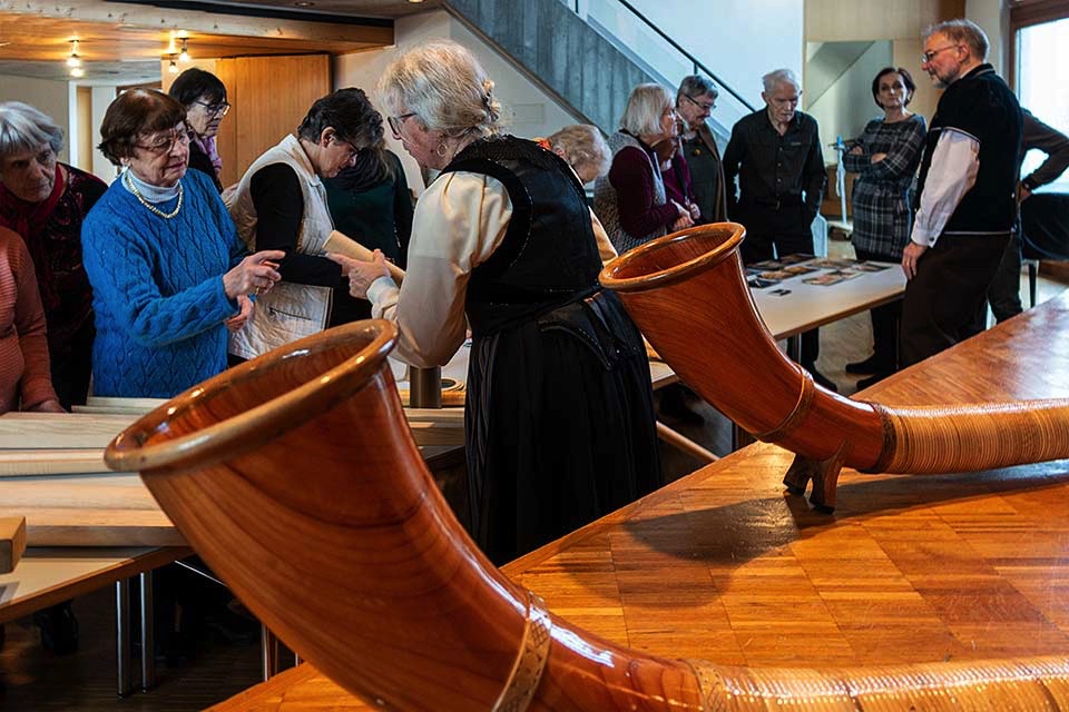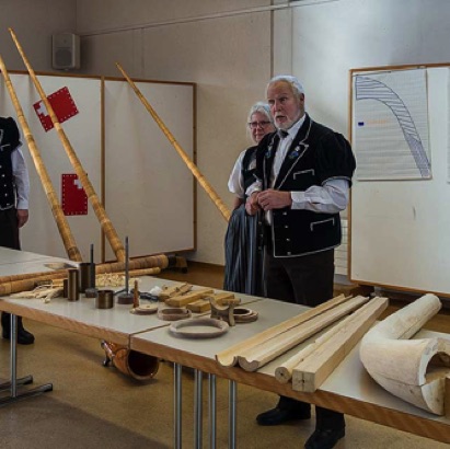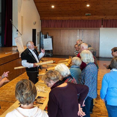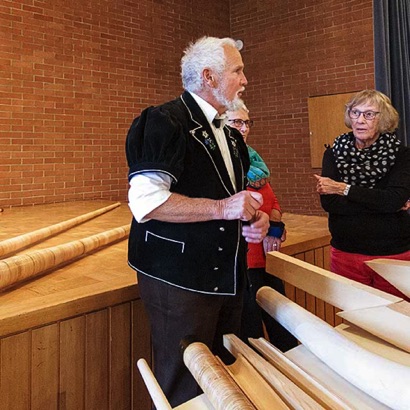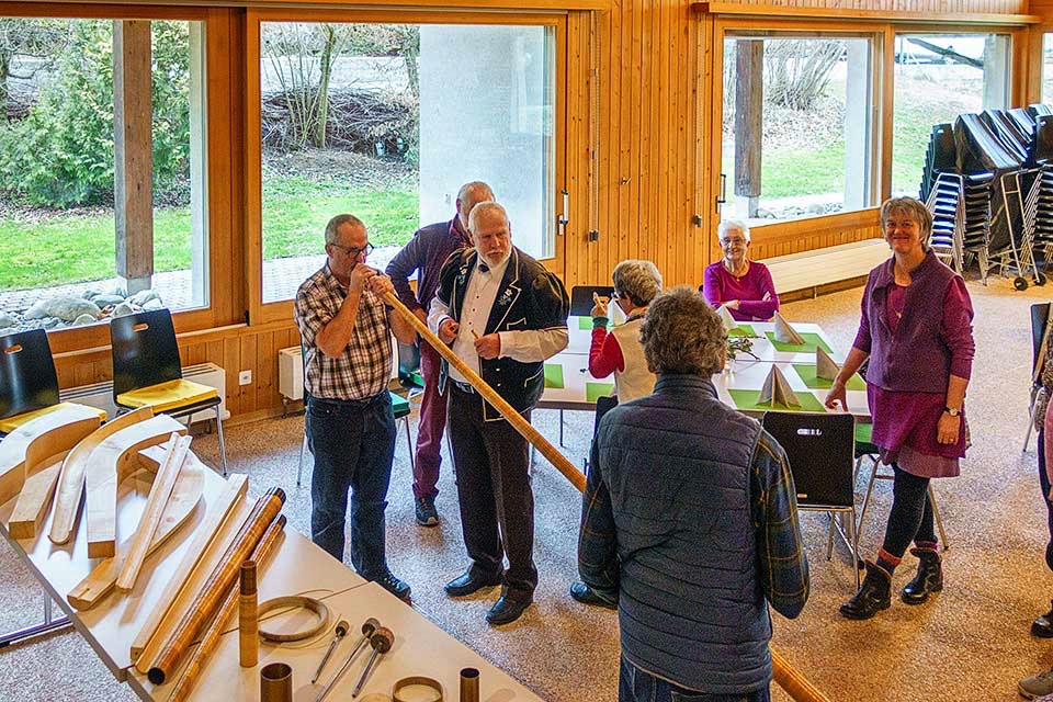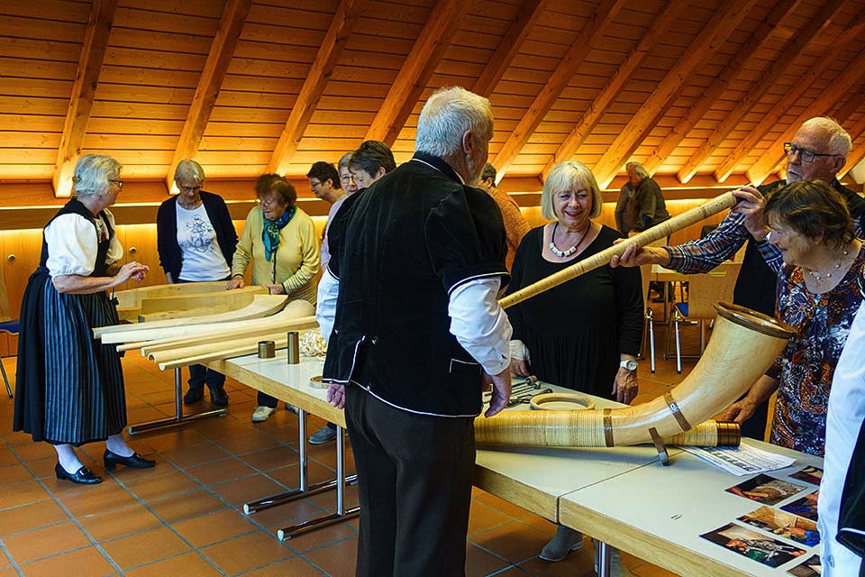 2021-11-16_Kirchenthurnen nach dem Vortrag "So entsteht ein Alphorn" findet sich ein reges Interesse an den gezeigten Alphornteilen.