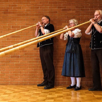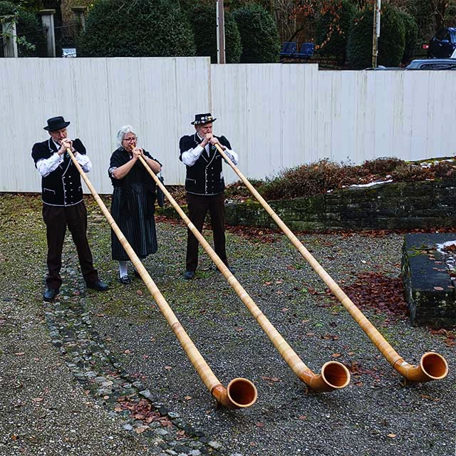 2018-11-07_Burgdorf Stubete Alphorntrio Silberhorn beim Vortrag der Eröffnungsmelodien, anlässlich der Vorführung Alphornbau.