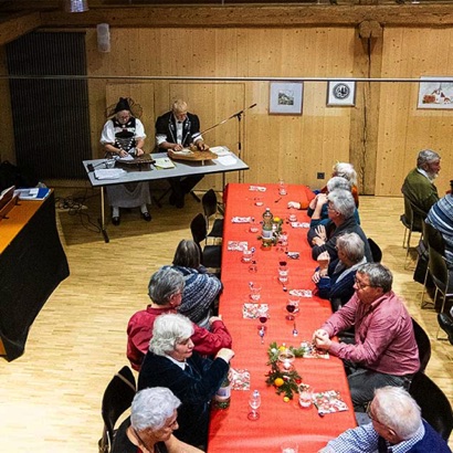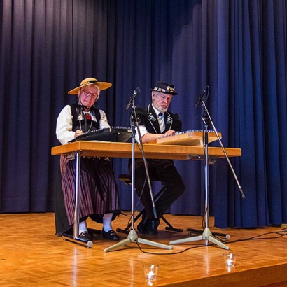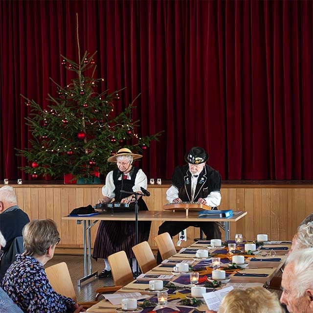2019-11-28_Fahrni Senioren-Adventsfeier Monika und Willy begleiten den Gesang der Gäste auf den Zithern.
