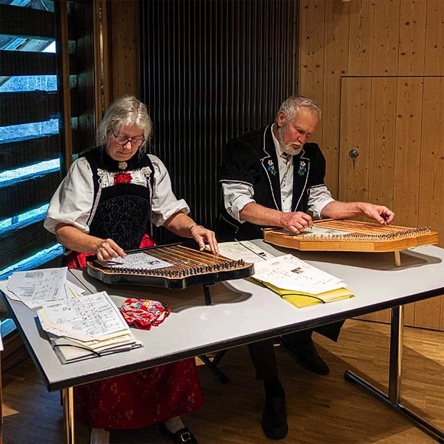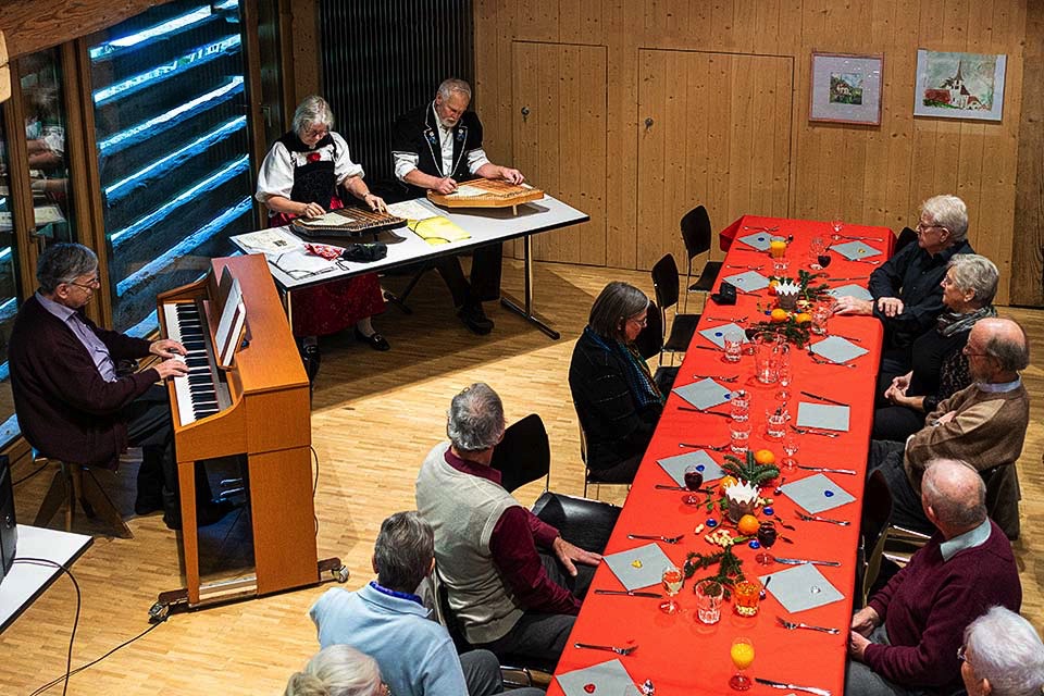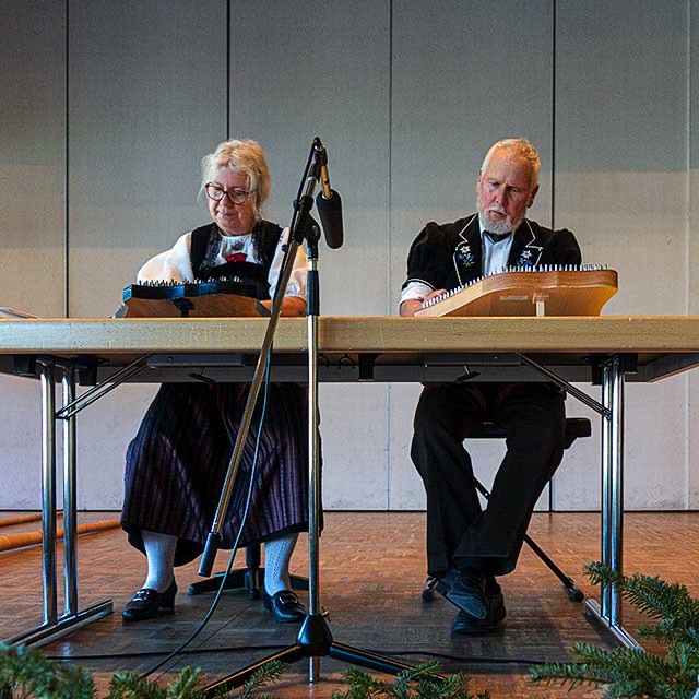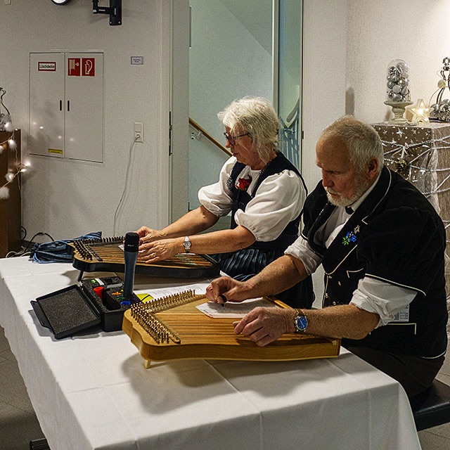 2023-12-05_Riggisberg Monika und Willy begleiten auf den Akkordzithern den Gesang der Weihnachtslieder.
