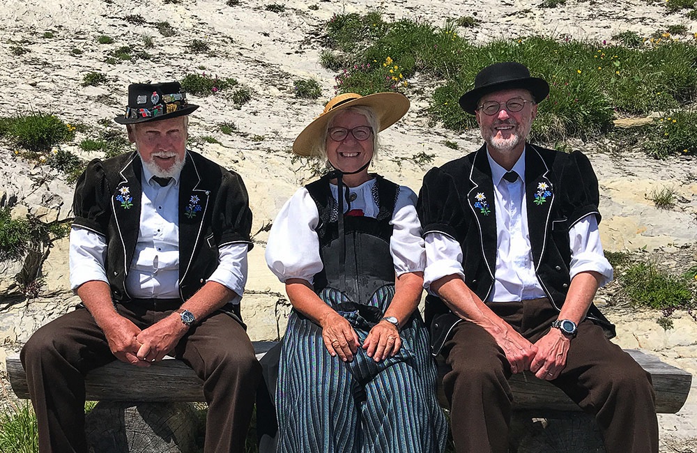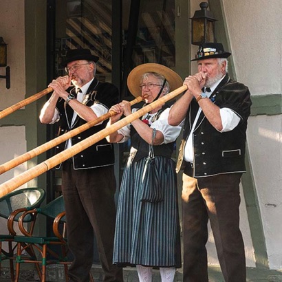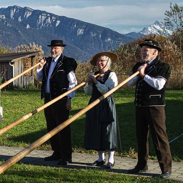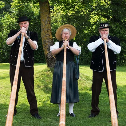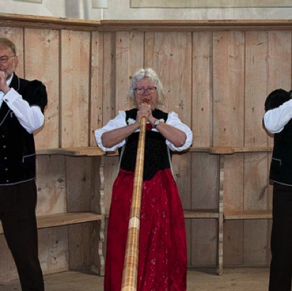 Auf diesen Bildern können Sie sehen, wie sich das Alphorntrio Silberhorn an den verschiedenen Anlässen in der typischen Tracht des Kantons Bern präsentiert. Monika trägt eine Gotthelftracht oder eine Berner Sonntagstracht, Enrico und Willy treten im Mutz auf. Die Fotos wurden vor allem in der Region Thun, im Berner Oberland, in anderen Regionen des Kanton Bern oder in der übrigen Schweiz aufgenommen.
