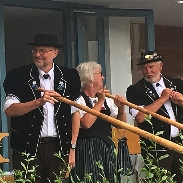 2025-08-23_Uetendorf am Geburtstagsfest für vier runde Geburtstage spielt das Alphorntrio Silberhorn ein fröhliches Happy Birthday und traditionelle Melodien.
