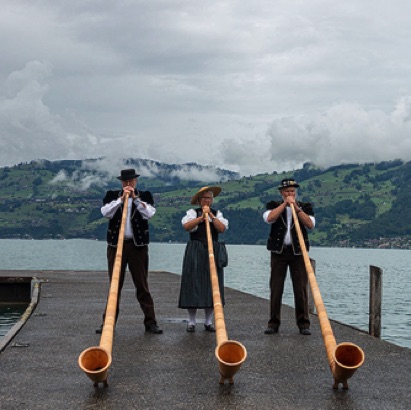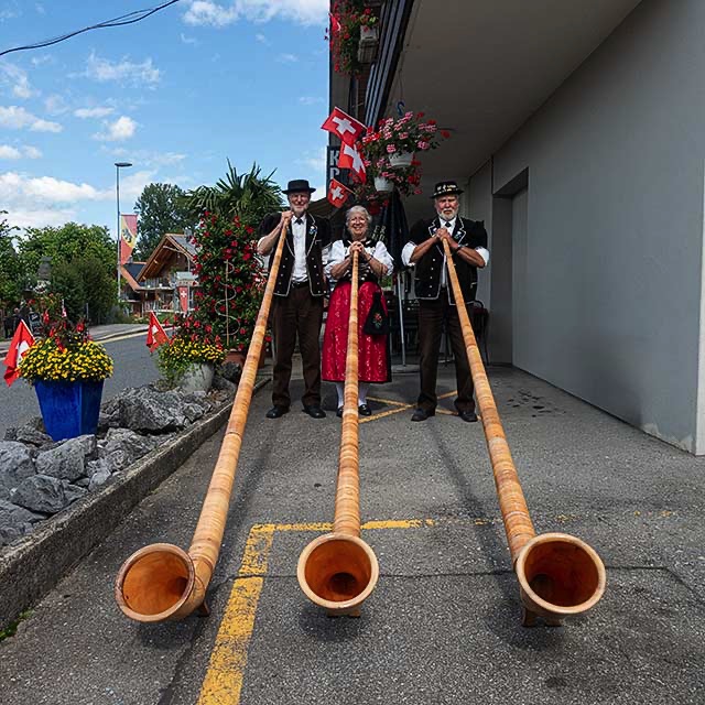 2021-08-01_Faulensee am Thunersee zum 1. August bläst das Alphorntrio Silberhorn einige Alphornmelodien.