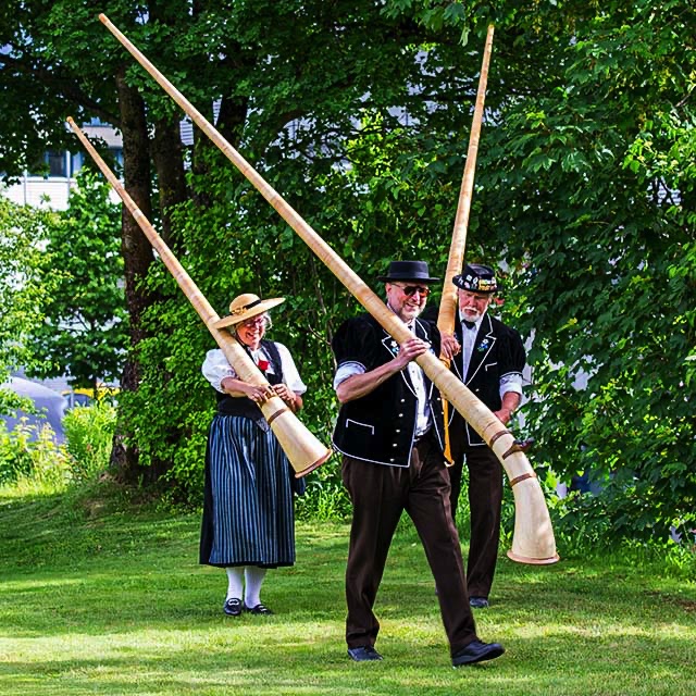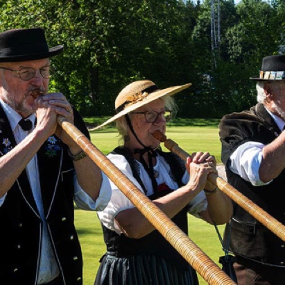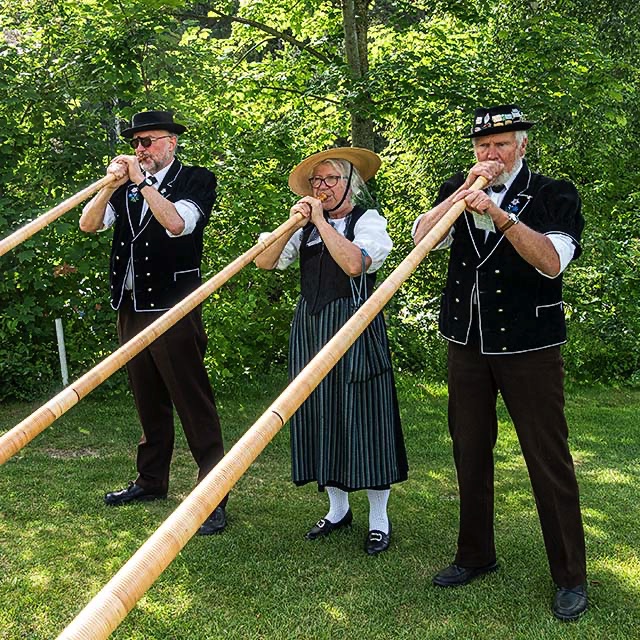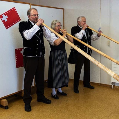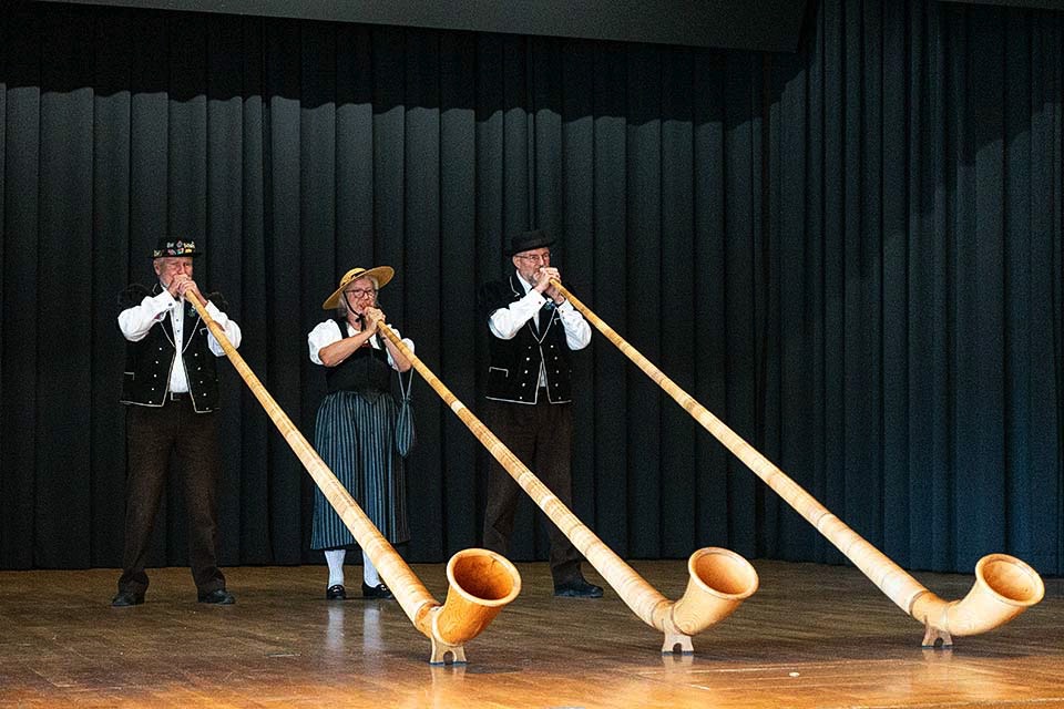 2023-06-07_Niederscherli mit einer Alphorn-Melodie begrüsst das Alphorntrio Silberhorn die Gäste des Seniorennachmittags.