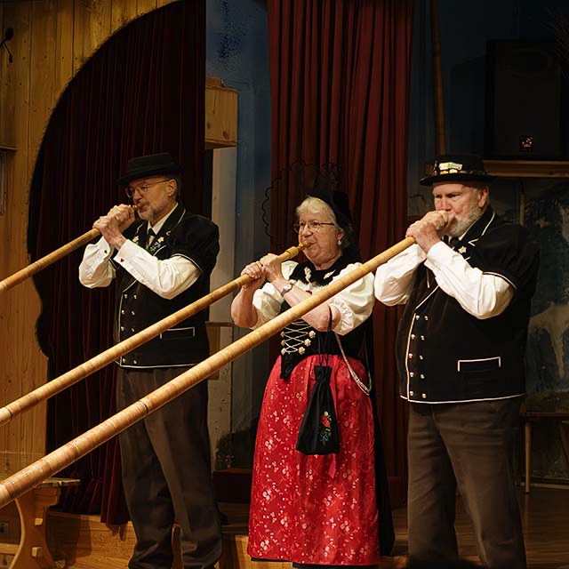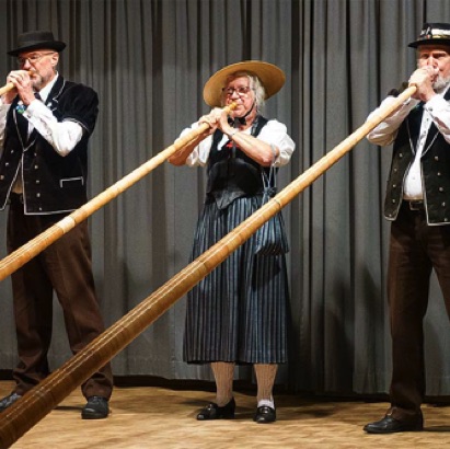 2024-02-14_Wichtrach das Alphorntrio Silberhorn begrüsst die Gäste zum Begegnungsnachmittag der Kirchgemeinde.
