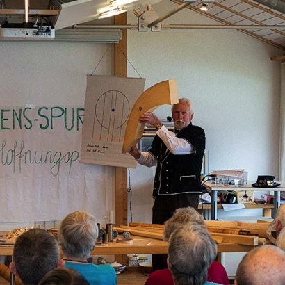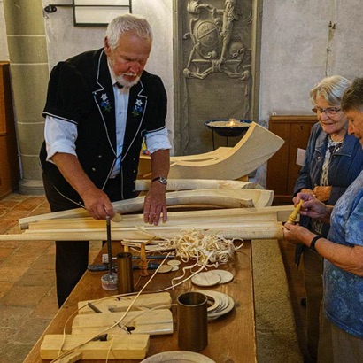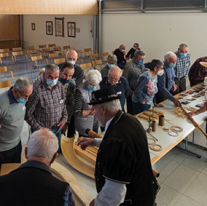 2022-03-15_Schüpfen aufmerksam folgen die Anwesenden Willy bei der Vorführung "So entsteht ein Alphorn".