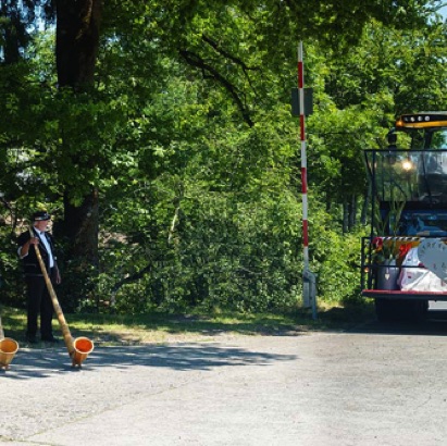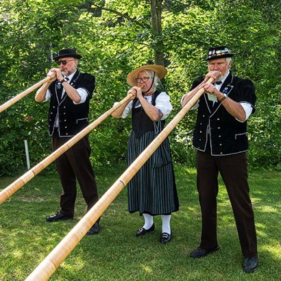 2022-06-10_Allmendingen bei strahlendem Wetter an einem Event für Firmenkunden spielt das Alphorntrio Silberhorn stimmungsvolle Melodien.