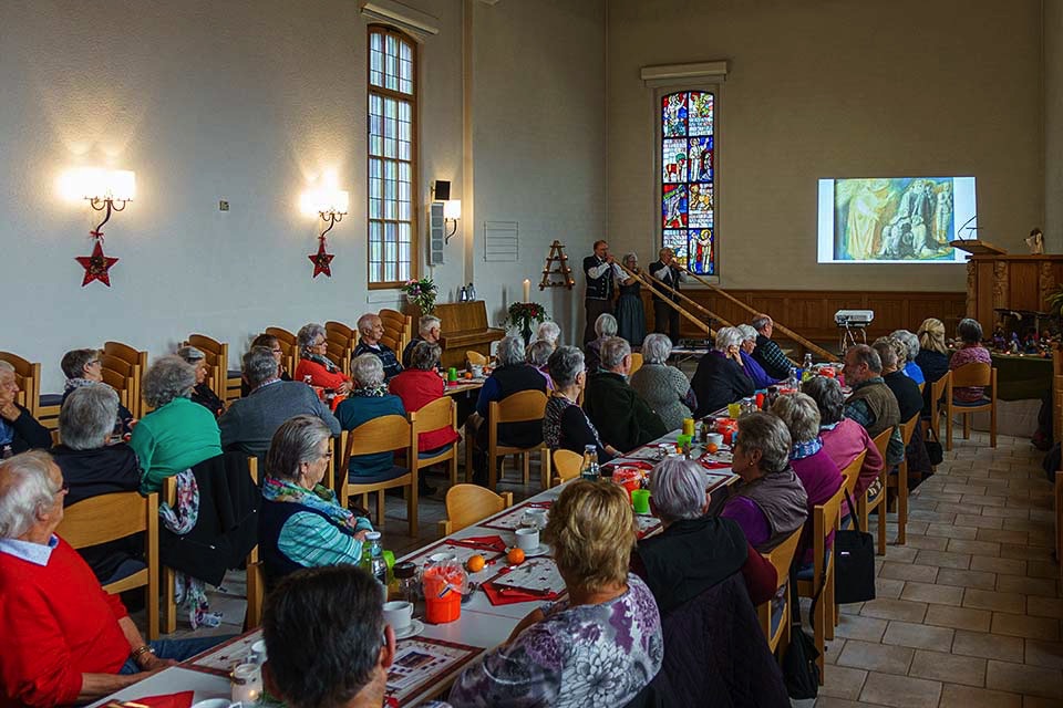 2017-12-10_Jegenstorf Alphorntrio Silberhorn an der Senioren-Weihnacht der Kirchgemeinde beim Vortragen der feierlichen Melodien.