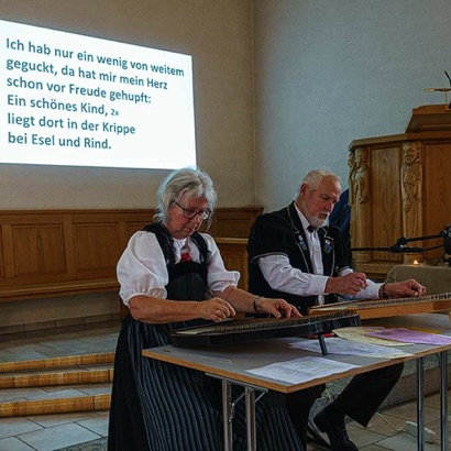 2021-12-05_Blumenstein Monika und Willy begleiten den Gesang der Weihnachtslieder auf den Akkord-Zithern.