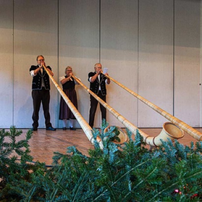 2025-12-02_Riggisberg das Alphorntrio Silberhorn eröffnet die Adventsfeier für die ältere Generation mit stimmungsvollen Alphornmelodien.