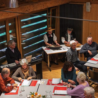 2024-12-08_Blumestein nachdem Weihnachtsessen werden mit der Begleitung von Akkordzithern Weihnachtslieder gesungen.