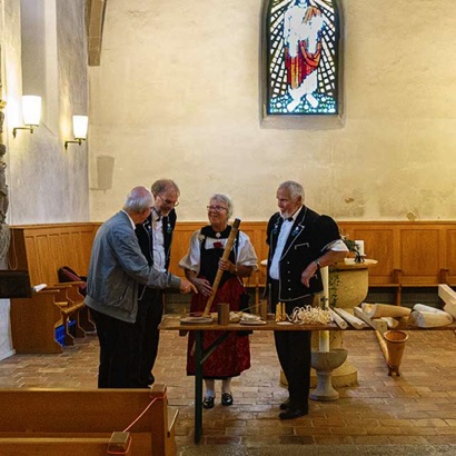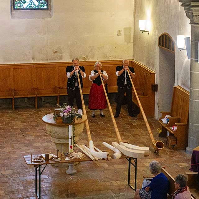 2018-07-08_Blumenstein musikalische Umrahmung des Gottesdienstes mit dem Alphorntrio Silberhorn und Willy Heger an der Orgel.