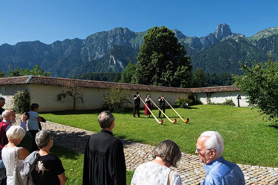 2025-08-17_Oberwirtneren mit feierlichen Alphornklängen begleitet das Alphorntrio Silberhorn den Berggottesdienst der Kirchgemeinde Blumenstein.