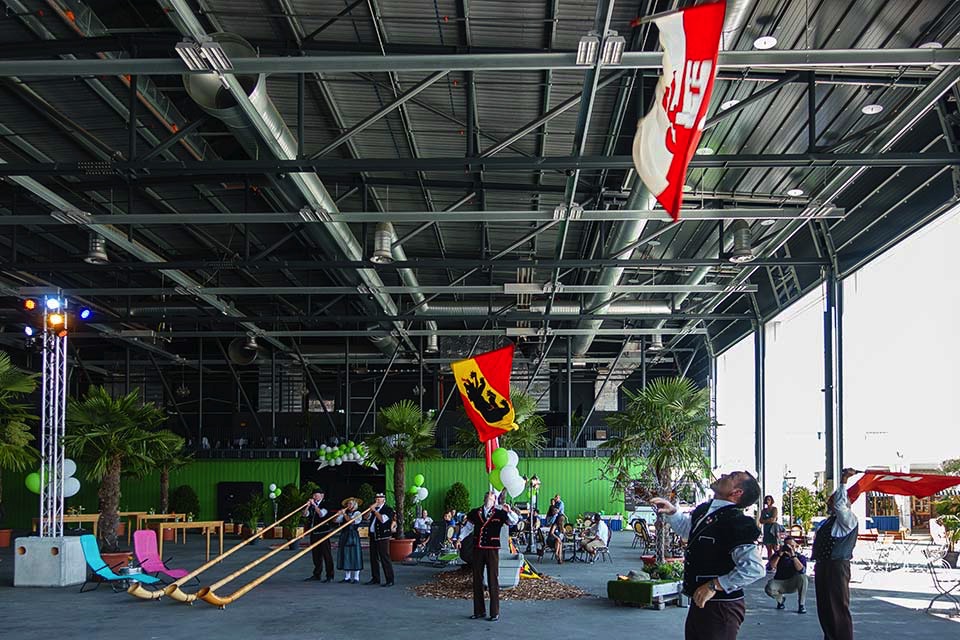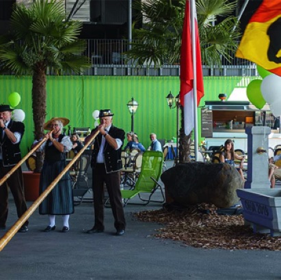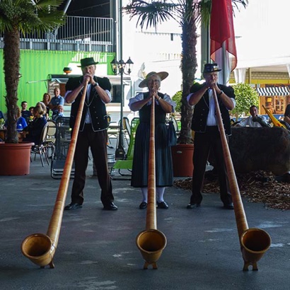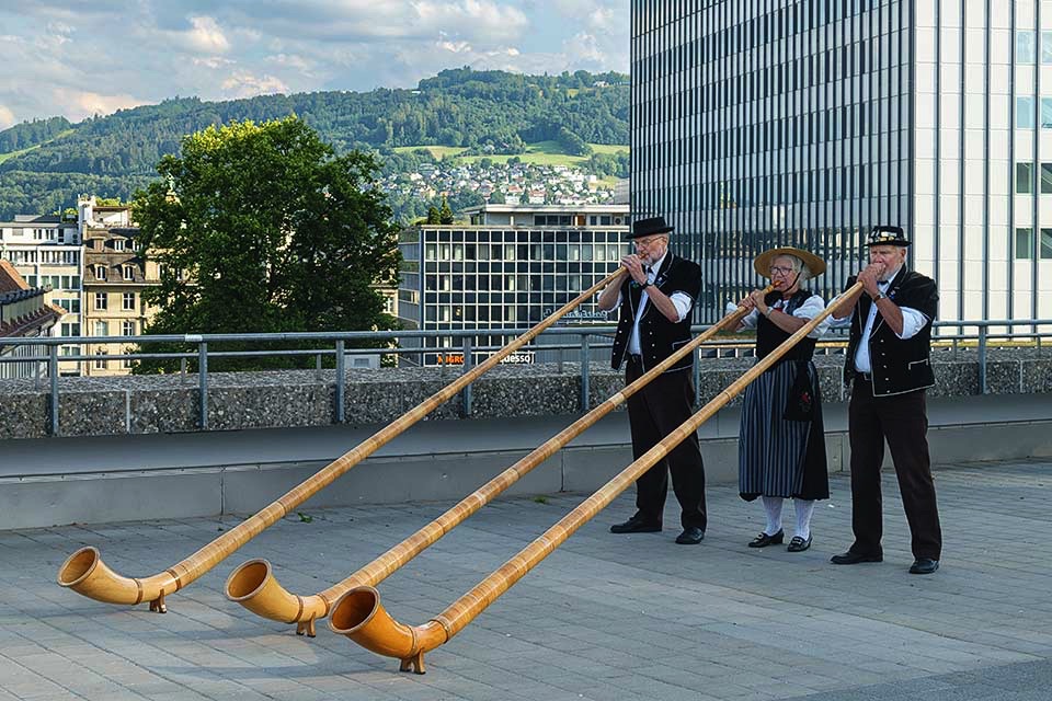 2025-06-13_Thun an einem Kundenanlass sorgt das Alphorntrio Silberhorn mit seinen Alphornmelodien für die passende Stimmung.