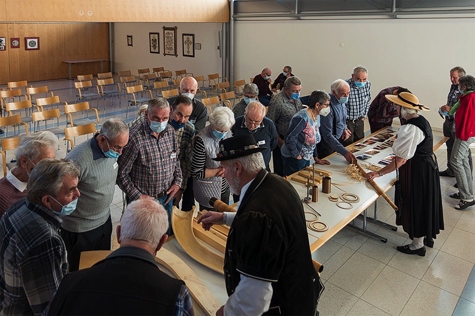 2021-11-02_Wiedlisbach die Senioren stellen nach dem Vortrag "So entsteht ein Alphorn" zahlreiche interessante Fragen.