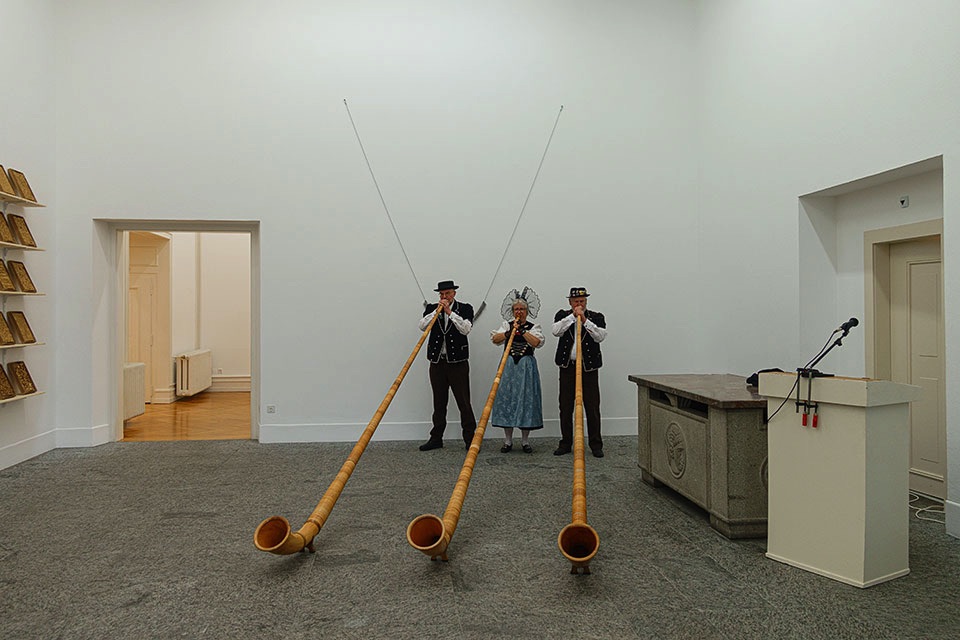 2022-02-25_Bern Kunsthalle das Alphorntrio Silberhorn mit der Direktorin V. K. an deren Verabschiedungsfest.
