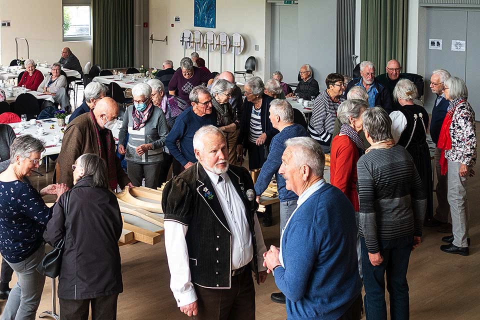 2024-04-27_Rüschegg nachdem fröhlich vorgetragenen Happy Birthday folgt das obligate Foto mit dem Geburtstagskind.