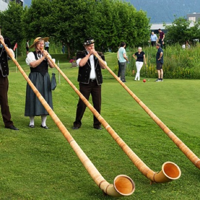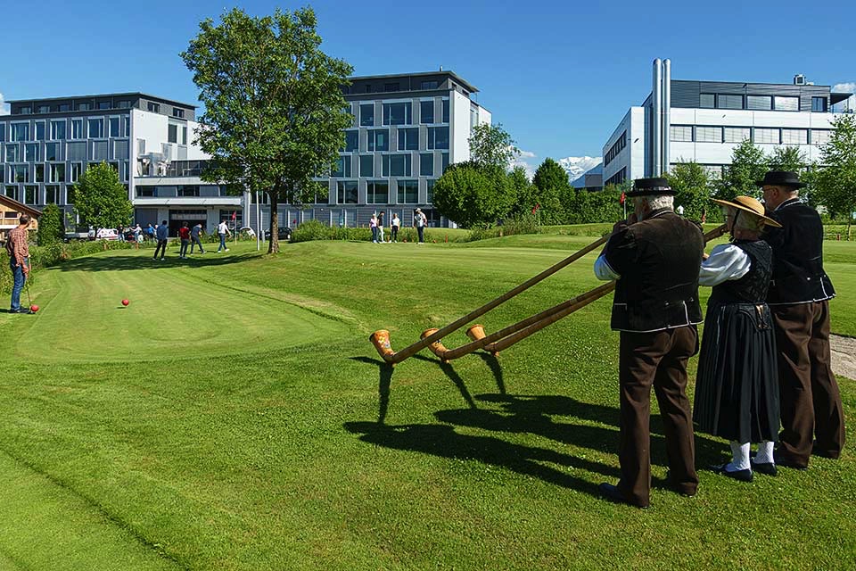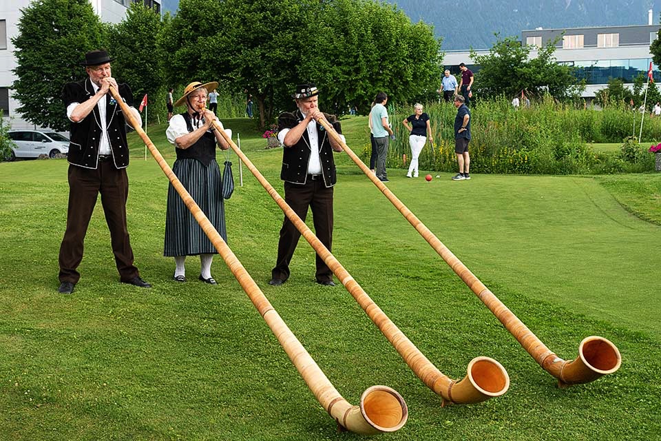 2024-06-07_Thun auf der Putting Anlage sorgt das Alphorntrio Silberhorn für die entspannte musikalische Stimmung beim Kundenanlass.