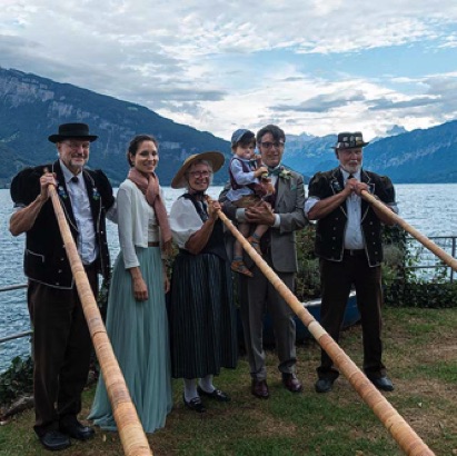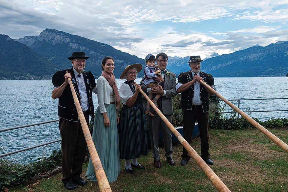 2022-09-02_Spiez am Ufer des Thunersees empfängt das Alphorntrio Silberhorn die Hochzeitsgesellschaft mit Alphornklängen.